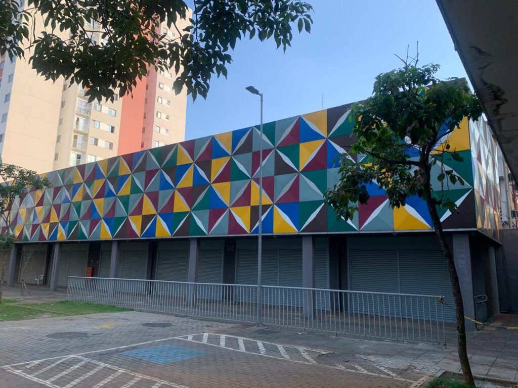 A pintura no conjunto habitacional que remete à antiga rodoviária.